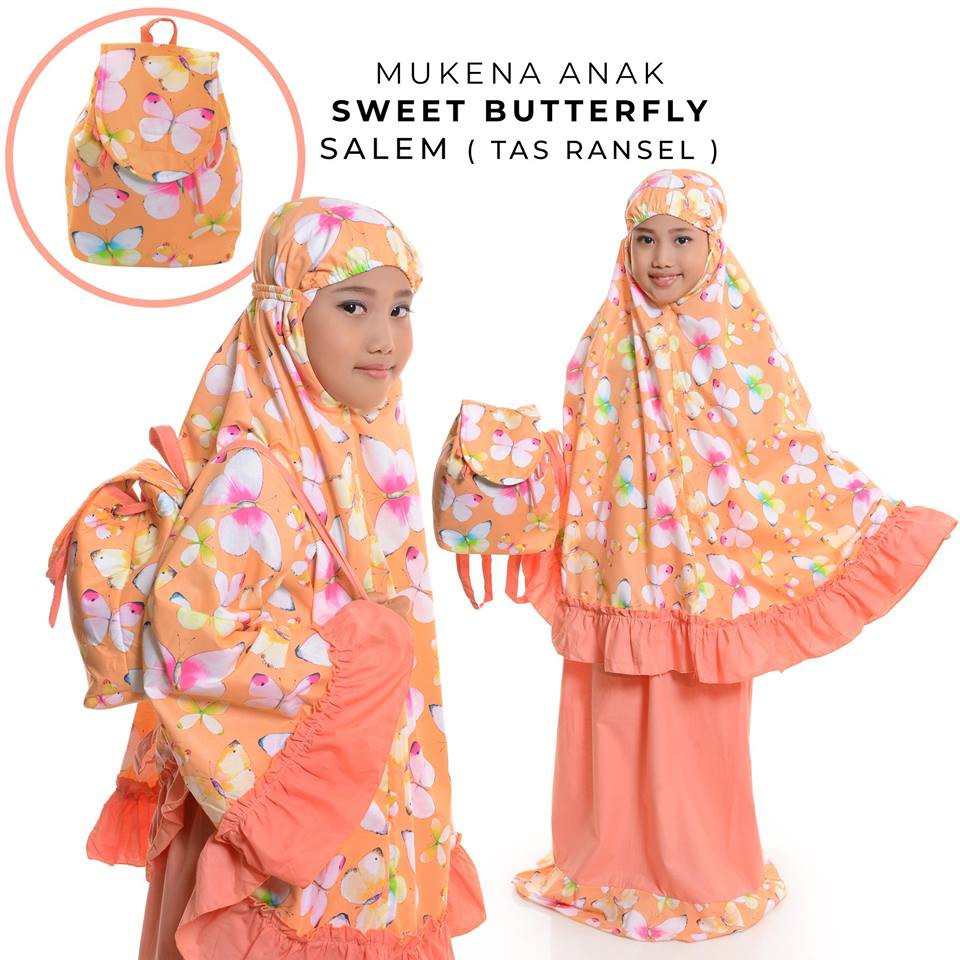 Mukena Anak Katun Sweet Butterfly Salem Tas Ransel Shopee