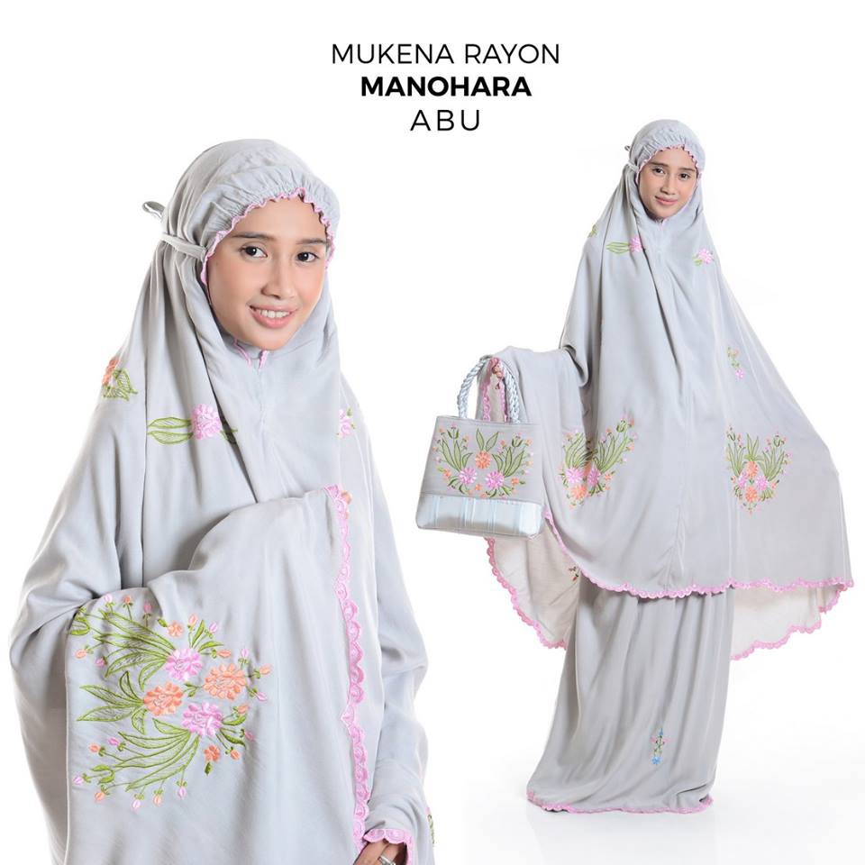 Mukena Dewasa Jumbo Katun Rayon Bordir Manohara Abu Hitam Putih