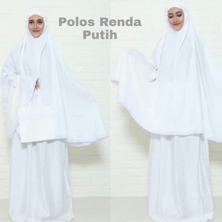 Jual Mukena Jumbo Putih Polos Renda Tempel Bahan Rayon Super