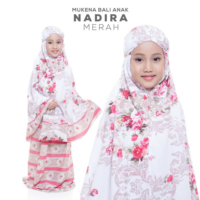Promo Mukena Anak Kecil Bali Nadira Merah Motif Bunga Bunga Umur 7