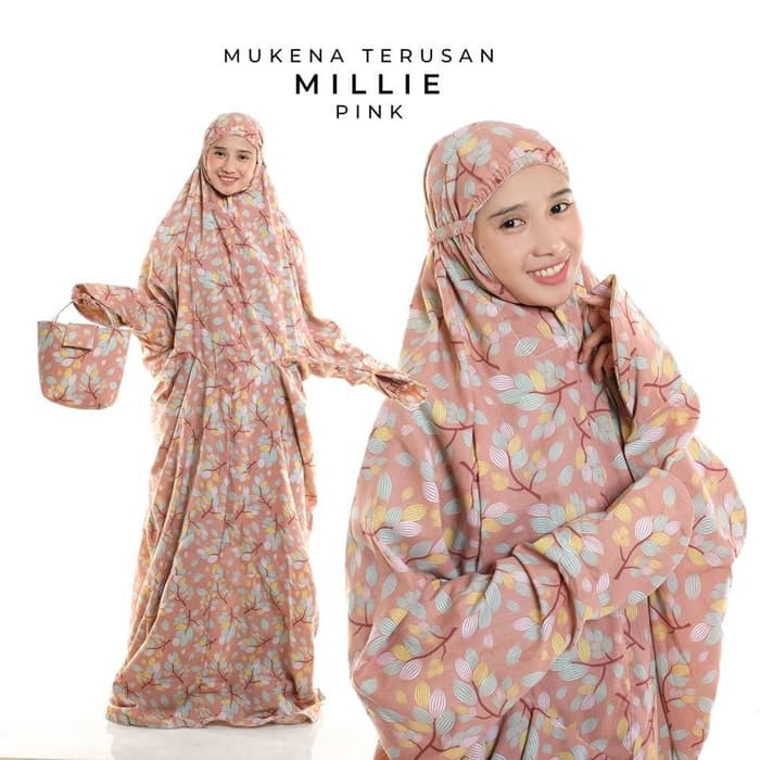 Mukena Terusan Dewasa Millie Telekung Rukuh Berlengan Bahan Rayon
