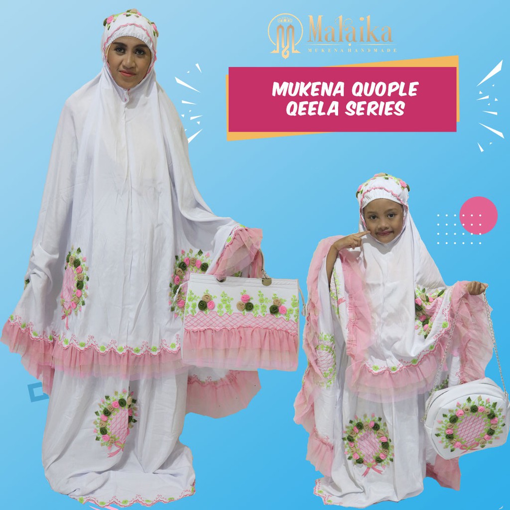 Mukena couple ibu dan anak murah malika ini kami jual dengan harga murah untuk harga couple dalam paket penjualannya anda akan mendapatkan juga tas cantik baik untuk ibu atau untuk mukena anaknya.