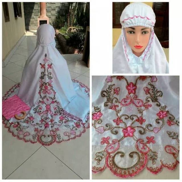 Mukena dengan bordir memberikan kesan tersendiri pada orang yang memakainya.