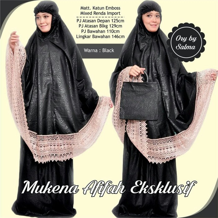 Jual Mukena Katun Premium Emboss Afifah Hitam Ekslusif Cantik