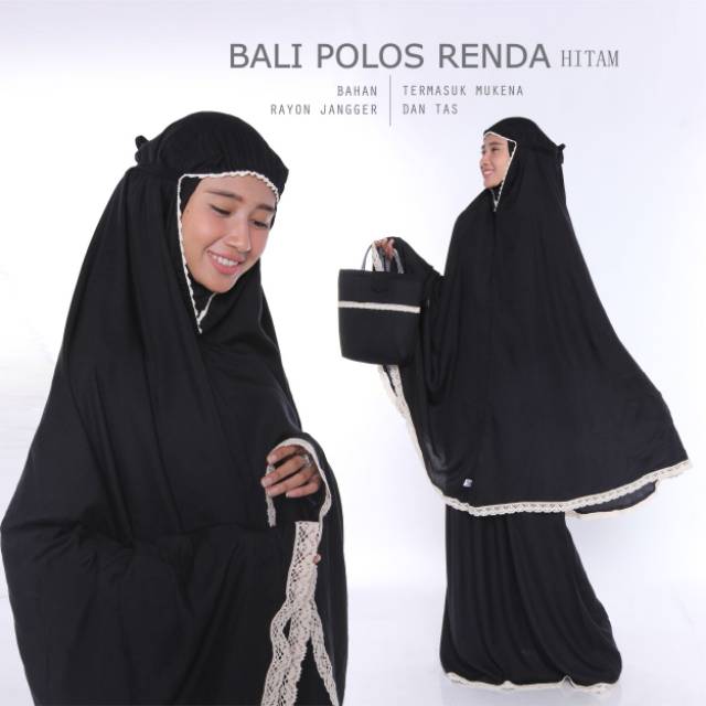 Jual mukena rayon bali polos hitam renda dengan harga rp115000 dari toko online mazaya mukena kota bekasi.