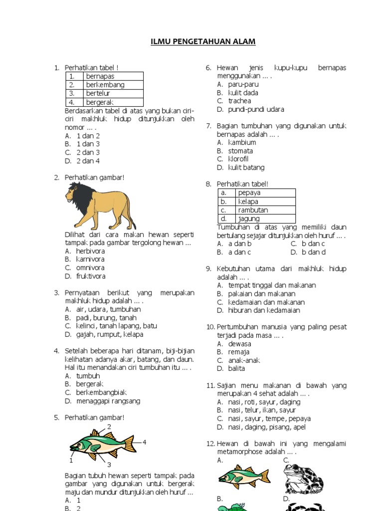 Soal dan Jawaban SD Kelas 4 SBO TV Senin 26 April 2021 ...